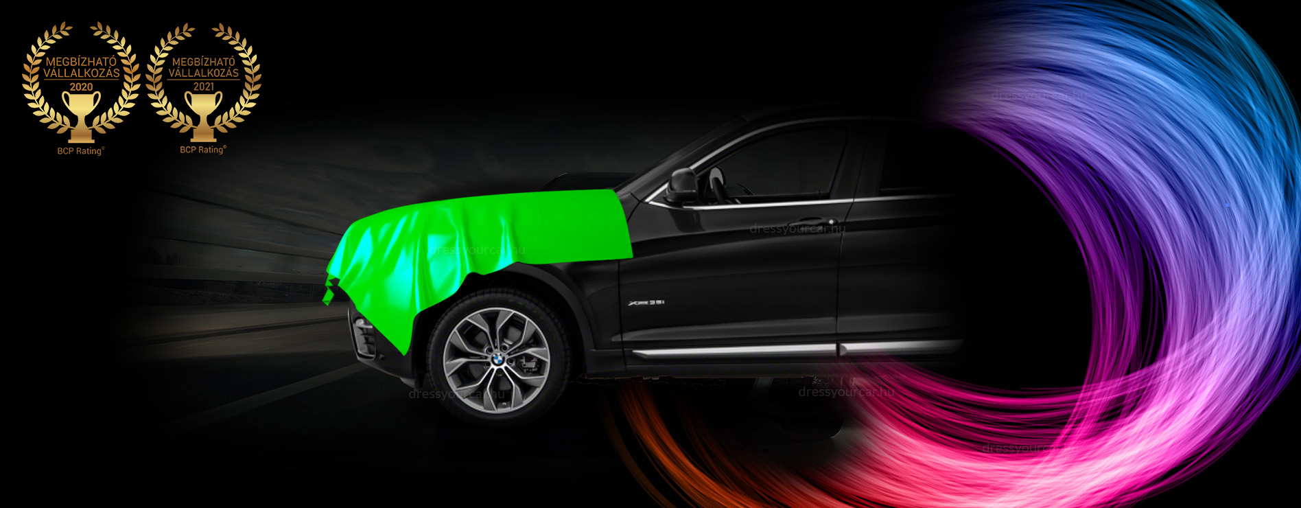 c) 3D extra tapadású(Teljes autók becsomagolására, vakablaknál és széleken nagyobb tapadást biztosít és élettartama kb. 7-9 év) ​ autódekorációs fóliákat.